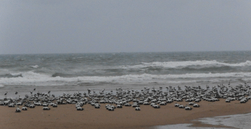 Male Eiders gathering to moult. Just a small part of the huge flock.