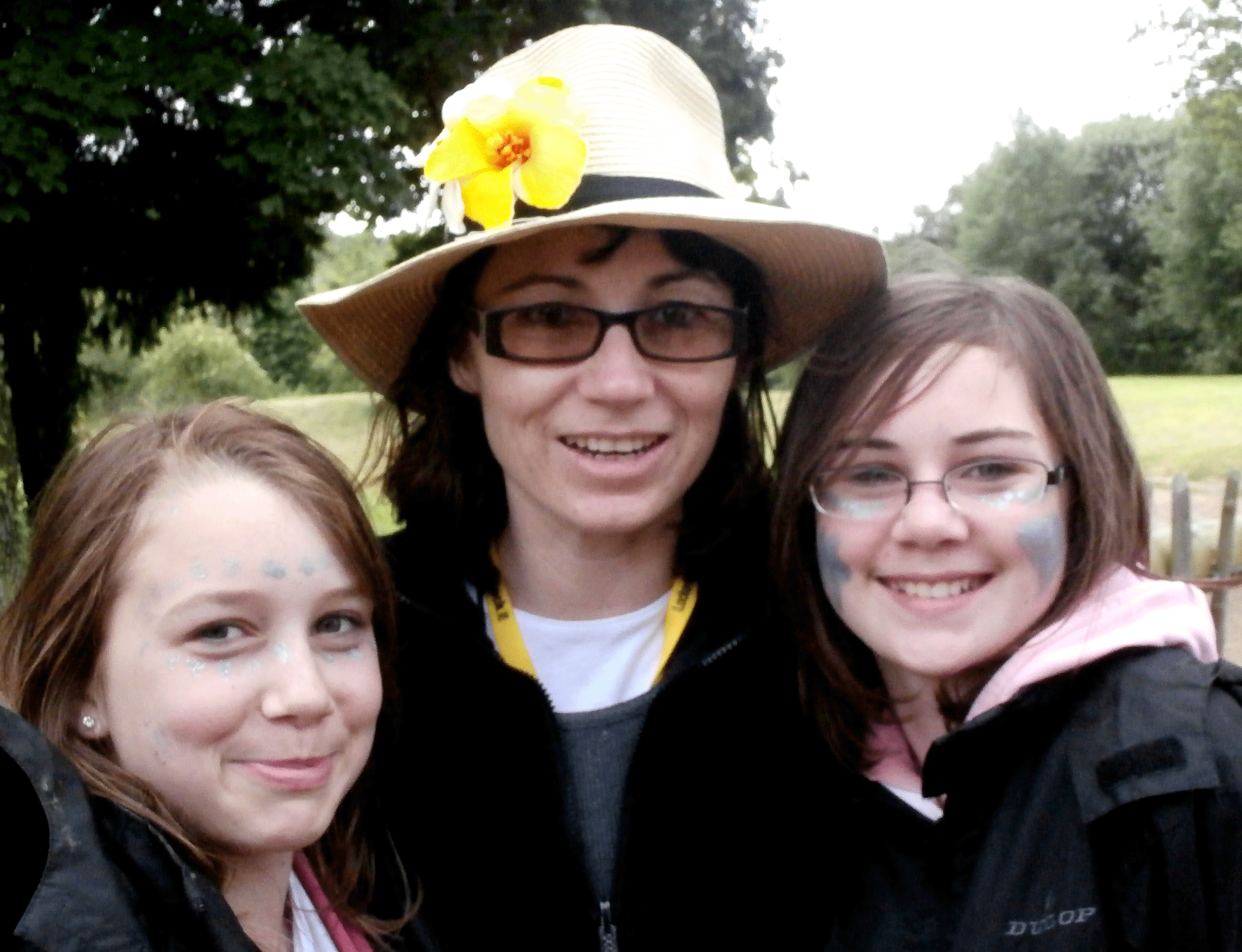 …. and of course I was camping with hyperactive and volatile teenagers (and their Mum). Kara, Janis and Amber with face paint and silly hat.
