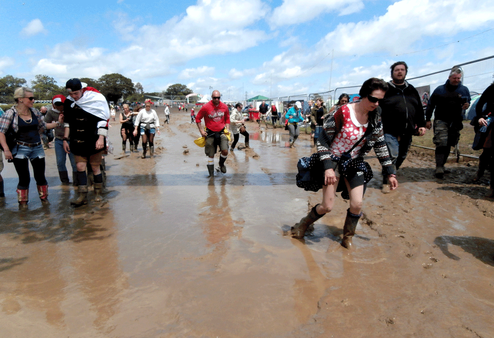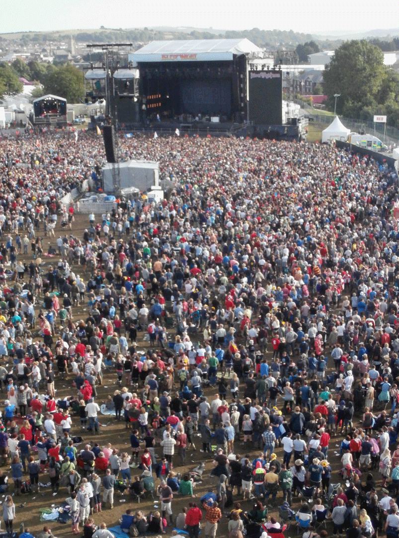 …. and the fairground and Big Top stage to the other. The flooded campsites and car parks are out of shot to the top right.