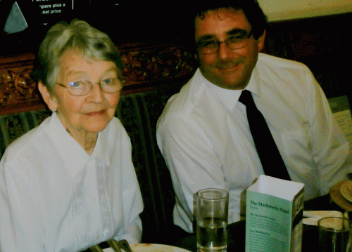After Mum’s funeral we gathered at a nearby hotel for a meal. Simon is with our Aunt Audrey, Mum’s younger sister from Coventry. Of her four siblings two have already passed away and the other is too infirm to travel.