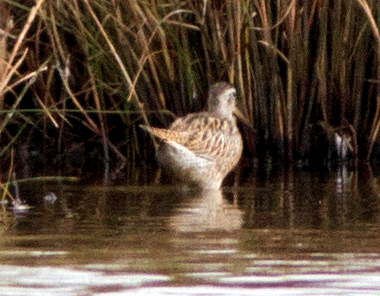 The following five photos were taken by Kevin Lane and have been intrumental in the identificcation of this bird. The bill appears particularly long, but there is considerable overlap in this feature between the two species, the internal markings of the tertials are quite clear and the internal barring of the greater coverts can just be seen.