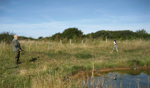 Mick tries flicking for Swallows, raising the net just as the birds leave after drinking at the pond, we caught far more seed heads than birds and returned to using a static, tethered net.