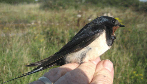 Along with Sean Walls and Mike Gould, I went ringing at Durlston on Friday 21st. I had hoped for a fairly short session as I still had to pack for my trip to Shetland but it was not to be. By the time Sean and Mike left for work at 0845 we had ringed over 60 birds, almost entirely Blackcaps and Chiffchaffs, but there was plenty more to come. Blackcaps and Chiffs kept arriving, with the occasional Whitethroat. A Robin in complete juvenile plumage was a surprise for the latter half of September was a surprise. As the morning progressed huge numbers of hirundines arrived and I ringed about a hundred Swallows and House Martins plus a couple of Sand Martins. A total of 227 birds were ringed, I didn’t get away until about 3pm, much later than I had hoped for but it was a great experience. Lets hope we get a few recoveries from all those birds.
