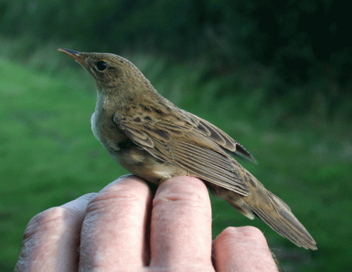 On the 30th I agreed to go ringing with trainee John Dowling, but it was too windy to go to Durlston, so I contacted Trevor Squire and we headed to his private ringing site in north Dorset. It was still rather windy and we only ringed about ten birds, but four of them were Grasshopper Warblers (plus caught another which was a retrap). It was nice to see Trevor again and it was John’s first visit to his site.
