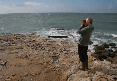 I continued on to Portland where a North American Monarch Butterfly had been seen for the last few days. It is presumed that the butterfly arrived on the same winds that brought the dowitcher, however a population of Monarchs exists on the Canary Islands (presumably a result of an earlier trans-Atlantic invasion) and some postulate it may have come from there. The local paper states that ‘over a thousand Lepidopterists have descended on Portland’. This should really have a read ‘a small number of Lepidopterists and a thousand twitchers (who came to Lodmoor see the dowitcher and made a short drive to see an unusual butterfly) descended on Portland’.
