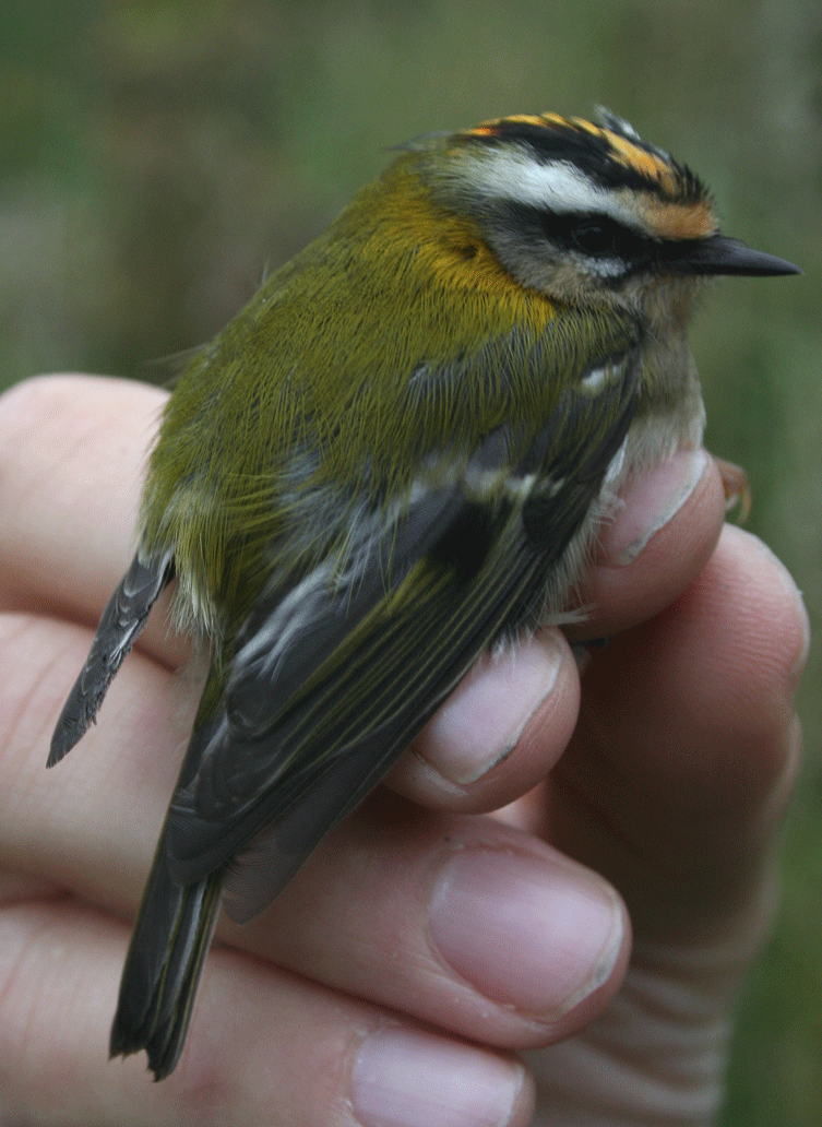 A beautiful male Firecrest. Most of our Firecrests occur in October, so this bird was exceptionally early.