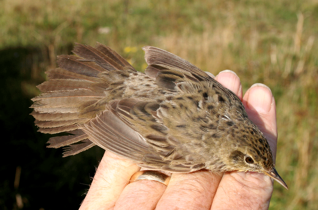 A first year Grasshopper Warbler. We only trap a few ‘Groppers’ at Lytchett and Durlston but Trevor has ringed over 90 this year!