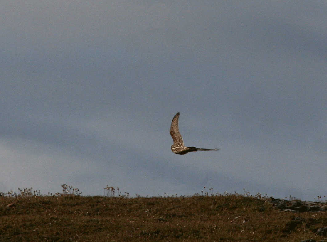 On the 23rd Paul and I birded on the Scatness peninsula but saw little of note. Paul phoned Roger to see if he had see anything and Roger invited us round for a cuppa. He also has a lovely house with a view over Grutness Bay. Roger had been out early that morning but like us had found little. Whilst we were there we were informed that a Buff-breasted Sandpiper had been found on Scatness, on the very pool we had walked past a short time before. We hurried down to Scatness, where along with other Shetland birders, we quickly located the sandpiper, a bird whose breeding range is almost totally confined to arctic Alaska. It was in the company of a Sanderling and gave cracking views until it was flushed by a Merlin and disappeared in the direction of the airport.