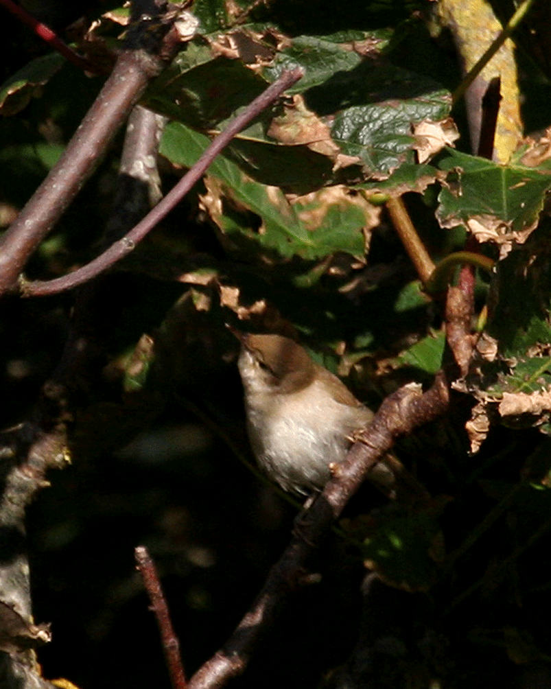 Blyth’s Reed Warbler, a vagrant from eastern Europe/western Siberia/central Asia. A colder shade or brown than Eurasian Reed Warbler with a supercillium that shows mainly in front of the eye.