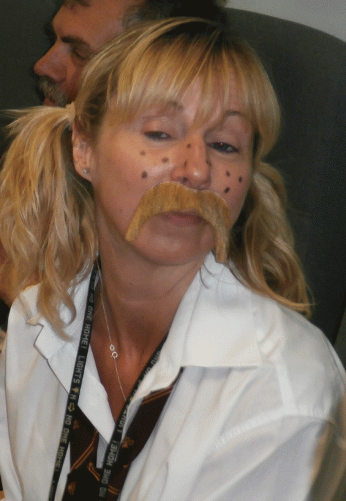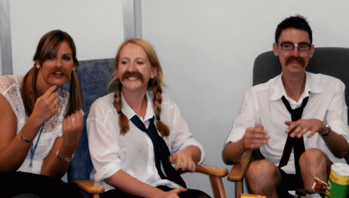 As Tash was leaving to become a teacher, a lot of the staff dressed up as school kids and wore a fake ‘tash’. L-R: Lisa, Polly and Dave.