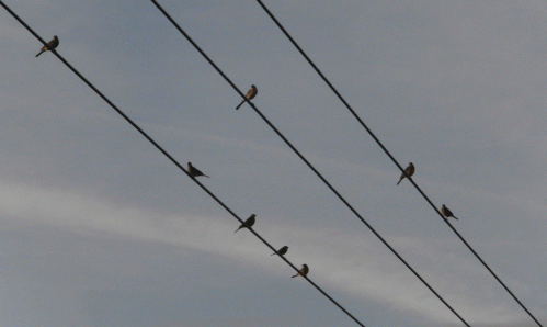 Yellow Wagtails and Tree Pipits sat on the wires above the maize field before dropping down into the crop.