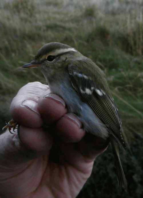I have had a long-standing wish to see a Yellow-browed Warbler in the hand, unfortunately the light was fading by the time it was caught.