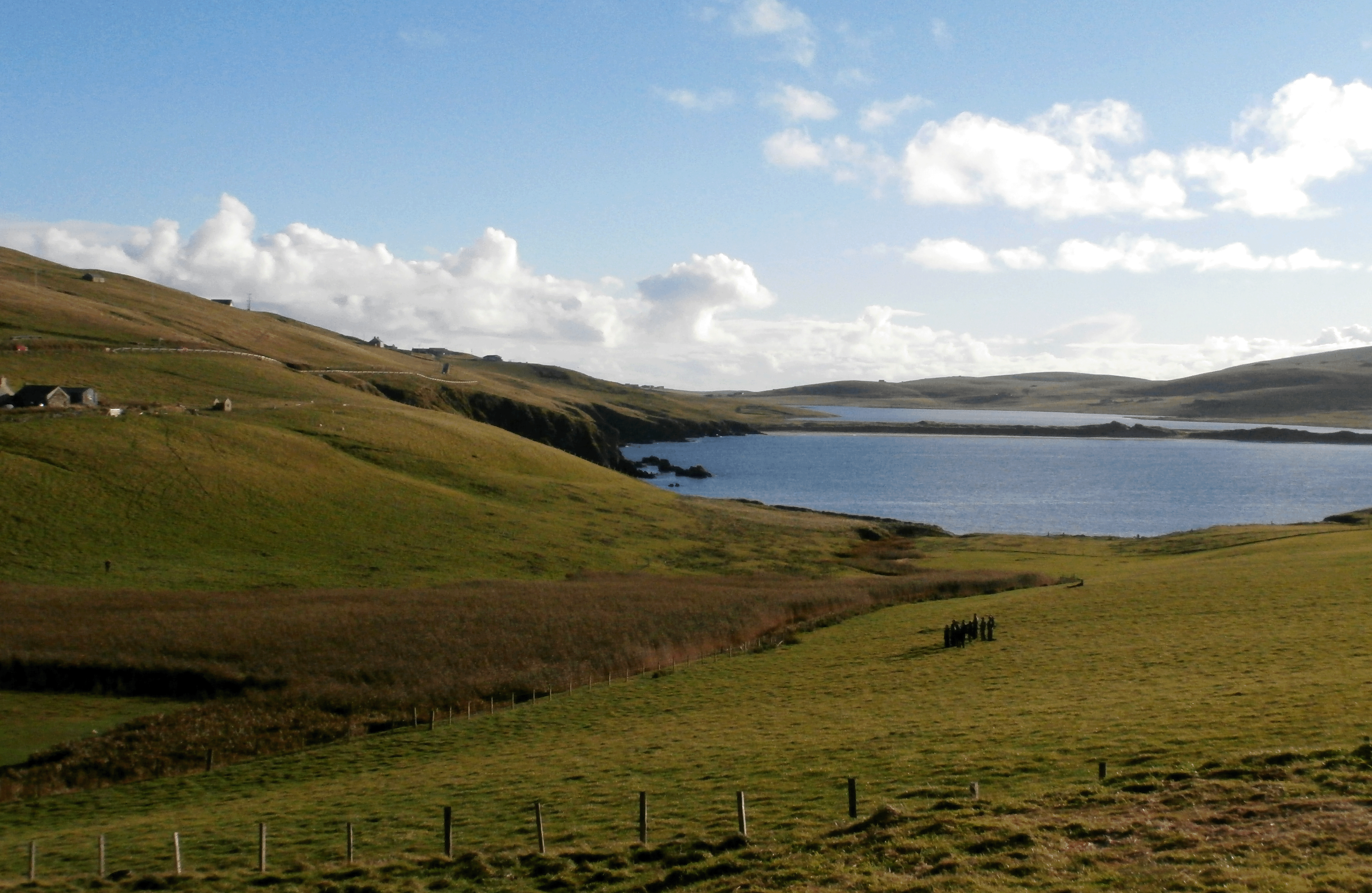The Rerwick reedbed, the only reedbed on Shetland. Note the birders to the left waiting for the Great Reed Warbler to show. Rerwick beach where I saw the Buff-bellied Pipit is just beyond the reedbed, on the other side of the bay is Scousburgh beach where I went yesterday and in the distance Loch Spiggie can be seen.