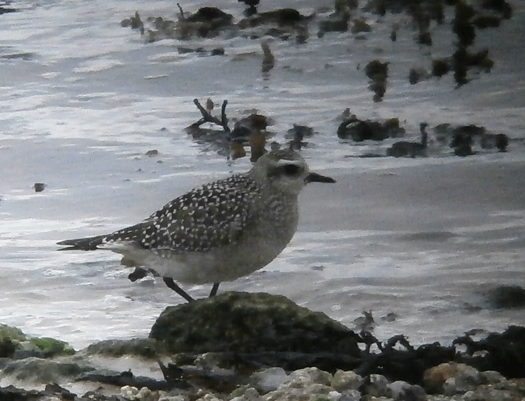 News of a Hume’s Leaf Warbler at the ‘dump clump’ near Hugh Town had me scurrying back. I saw this Central Asian species in Dorset in January, but it is a really rare bird and was worth seeing again. I joined some 50 other birders there with no success, then came news of a Short-toed Lark back, at all places, at Carn Friars a few meters past Porth Hellick. I retraced my steps and arrived just in time to see the lark before it flew. As the tide had come in, the American Golden Plover was much, much closer and I managed to get some digiscoped shots.
