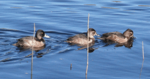 A first year male and 2 first year female Ring-necked Ducks. Clearly just arrived from the other side of the Atlantic – who says all Nearctic ducks are escapes.