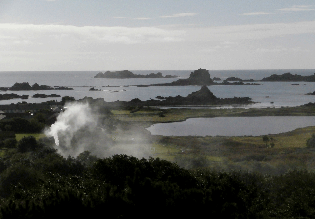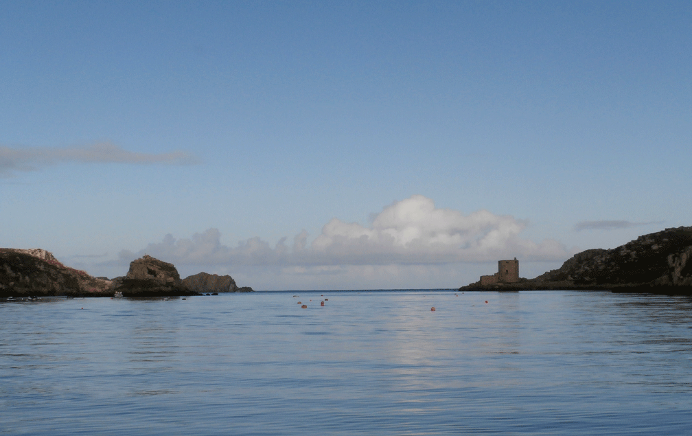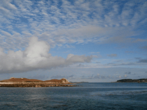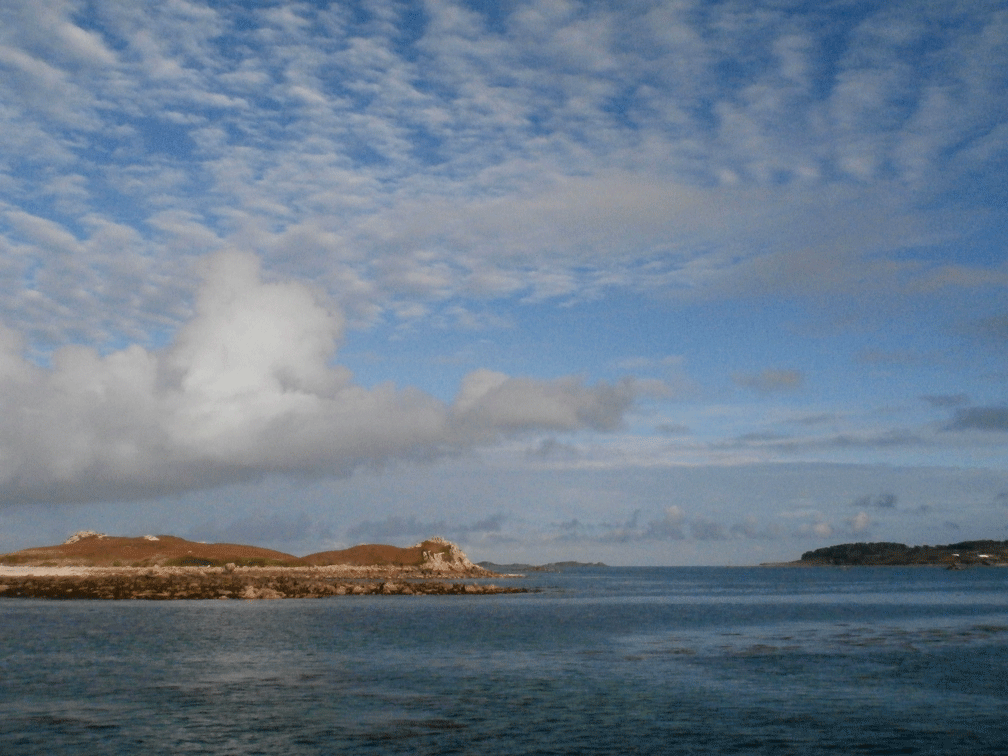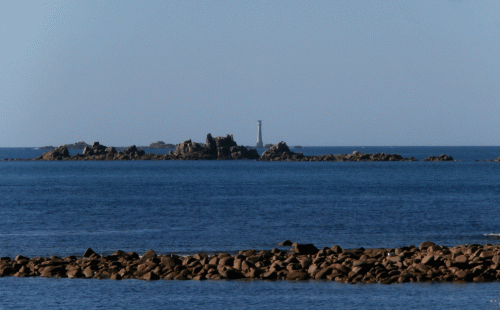 The Western Rocks with the Bishop lighthouse in the distance. The next land to the west of here is Canada.
