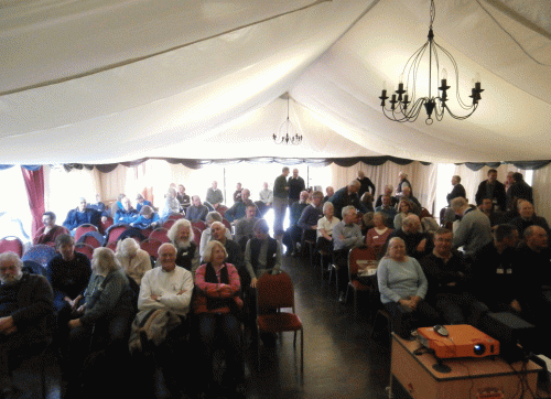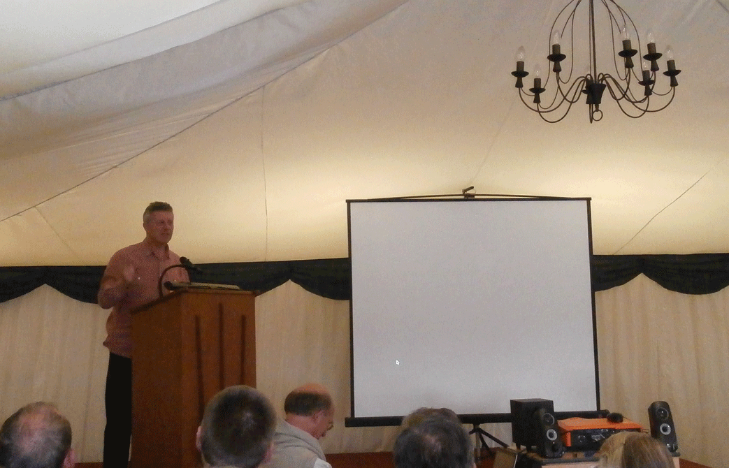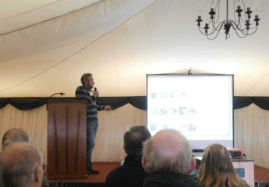 Birders gathered at Kingston Maurwood in a room (decked out at a tent) for the joint Dorset Bird Club / BTO conference.