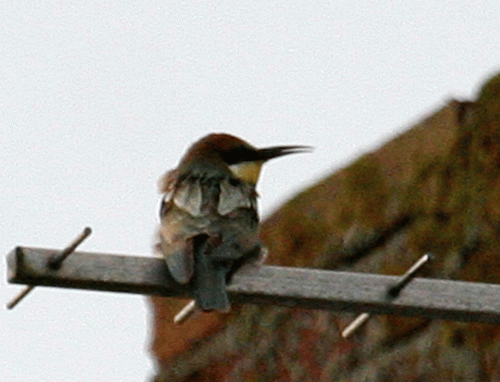 This is only the fourth time I have seen Bee-eaters in the UK, a juvenile on Scilly on 12/10 and 15/10/85, a flock of six adults at Durlston on 31/5/97 and today.