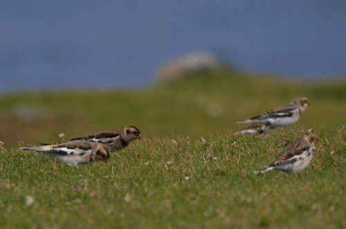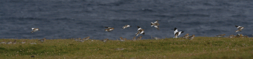Snow Buntings reach Shetland from both the Icelandic and Scandinavian breeding populations. Judging by the dark rumps of the birds in flight this group is from Iceland.