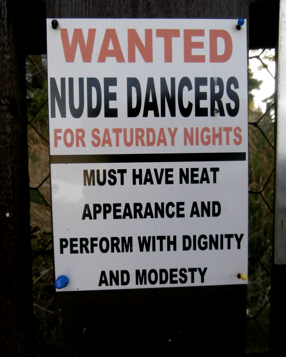 Sign on a gate at Voe. Clearly THE place to be on a Saturday night.