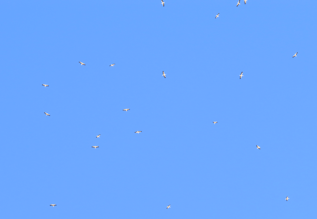 Spraying locusts with insecticides has put birds like these migrating White Storks at risk and a number have been found dead.
