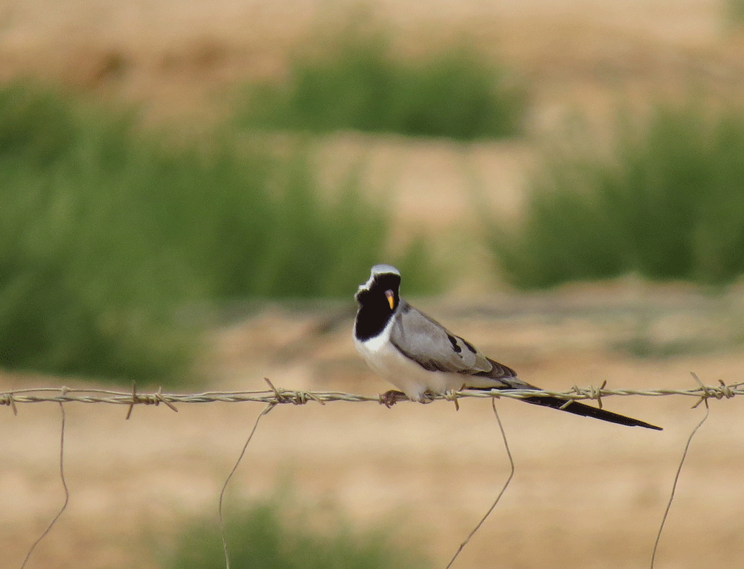 Three birds from nearby Yotvata Kibbutz: Widespread in dry area of Africa, the tiny Namaqua Dove can only be seen in the Avarva Valley within the Western Paleartic. This bird is perched on a section of the border fence that divides Israel from Jordan and I got into trouble with a military patrol for stepping off the track onto the ‘tracking lane’ that they examine for footprints of potential cross-border insurgents.