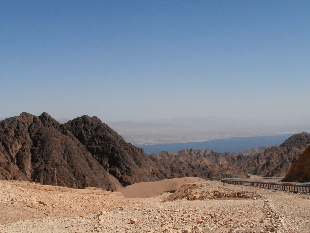 Eventually we had great views over the Gulf of Aqaba. There is a four country view from here. In the distance is Saudi Arabia, the land on the far shore of the Gulf is Jordan, whilst Egypt is just behind me. Aqaba can just be seen on the shore of the Gulf, whilst Eilat is hidden by the nearby mountains.