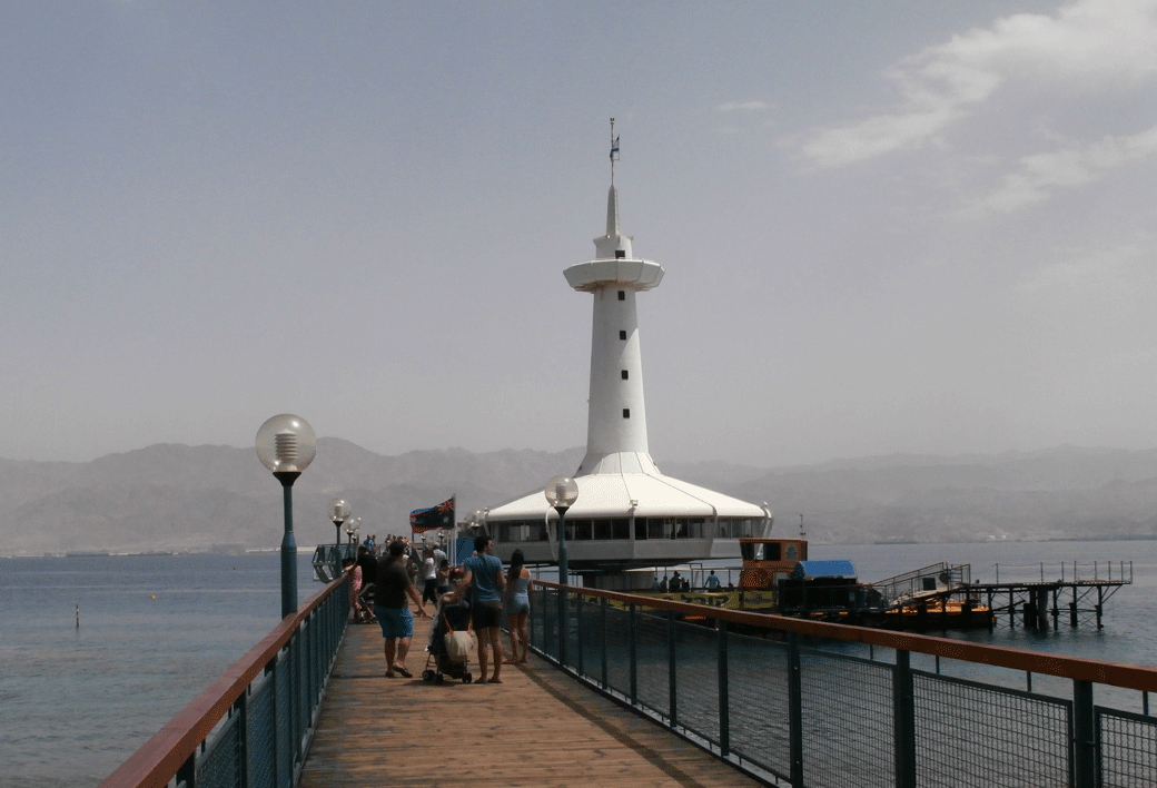 During the hottest part of one day we visited the Underwater Observatory where by descending steps to the underwater chamber you can look out onto the sea bed and the coral reefs. In common with everything at Eilat during Passover it was crowded and full of very noisy kids.