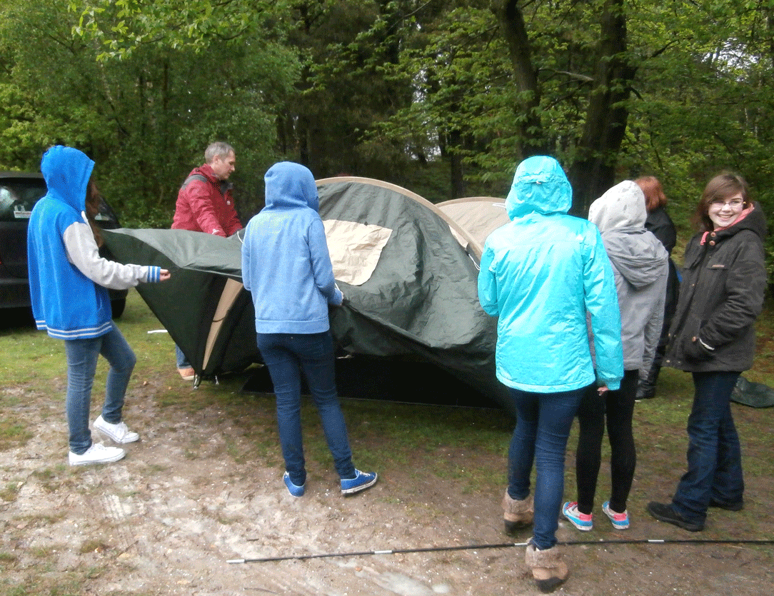 Amber birthday is in June, but as most of her friends will be involved in exams then, she opted to have a 16th birthday party at half-term break and had a camping and BBQ event at a nearby camp site. John opted to stay overnight for adult supervision and Margaret and I popped in to help. However the weather wasn’t too good, but eventually the tents got erected and the food cooked.