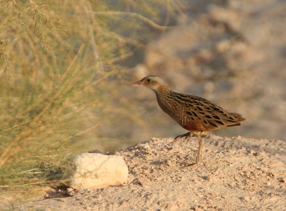 - One afternoon Terry, Mike and Bob stayed behind whilst Shaun and I went birding elsewhere. They had superb views of this Corncrake at the Kibbutz and managed to release the news in a most amusing manner that evening. Photo by Terry Elborne.