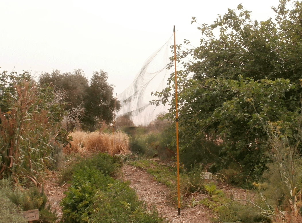 Most of the mist nets were erected in the organic garden. A few were also put near to the (empty) swimming pool.