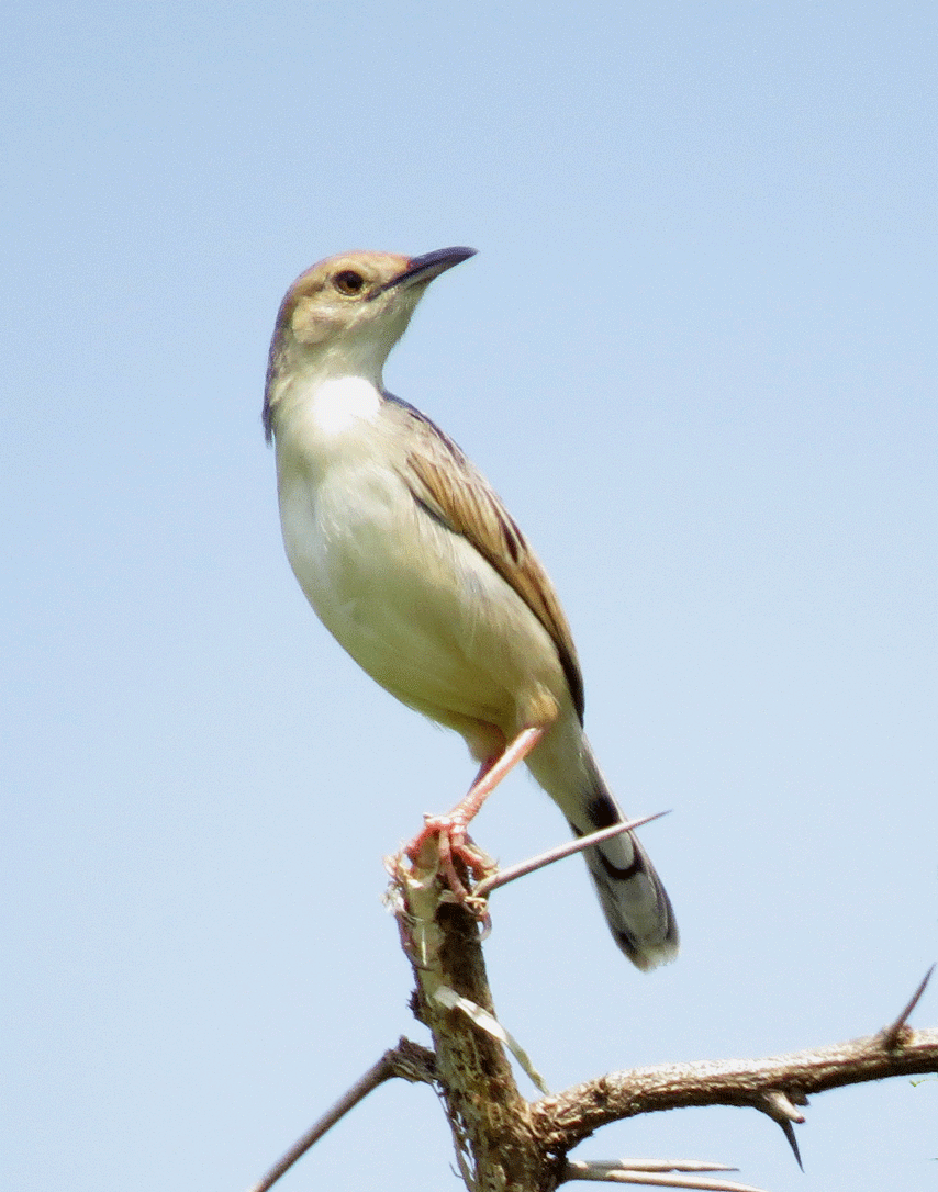 Many cisticolas are named after their repetitive songs, eg Croaking, Rattling, Wailing, Chirping, Trilling, Whistling, Siffling (derived from the French siffleur – to whistle) and of course the more familiar Zitting. This Winding Cisticola was seen quite often in scrub habitat throughout the tour.
