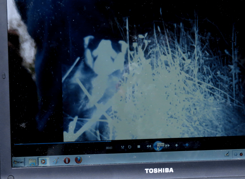 The group eagerly gathered around a laptop to see what had been recorded on the remote infra-red cameras.