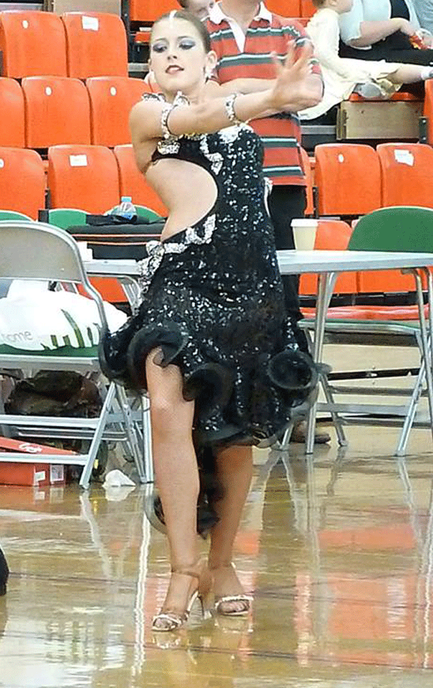 We didn’t realise until Monday evening when we visited Janis and the girls that Kara’s friend Lillie is a champion dancer in her age class. Here she is in competition, dancing the paso doble