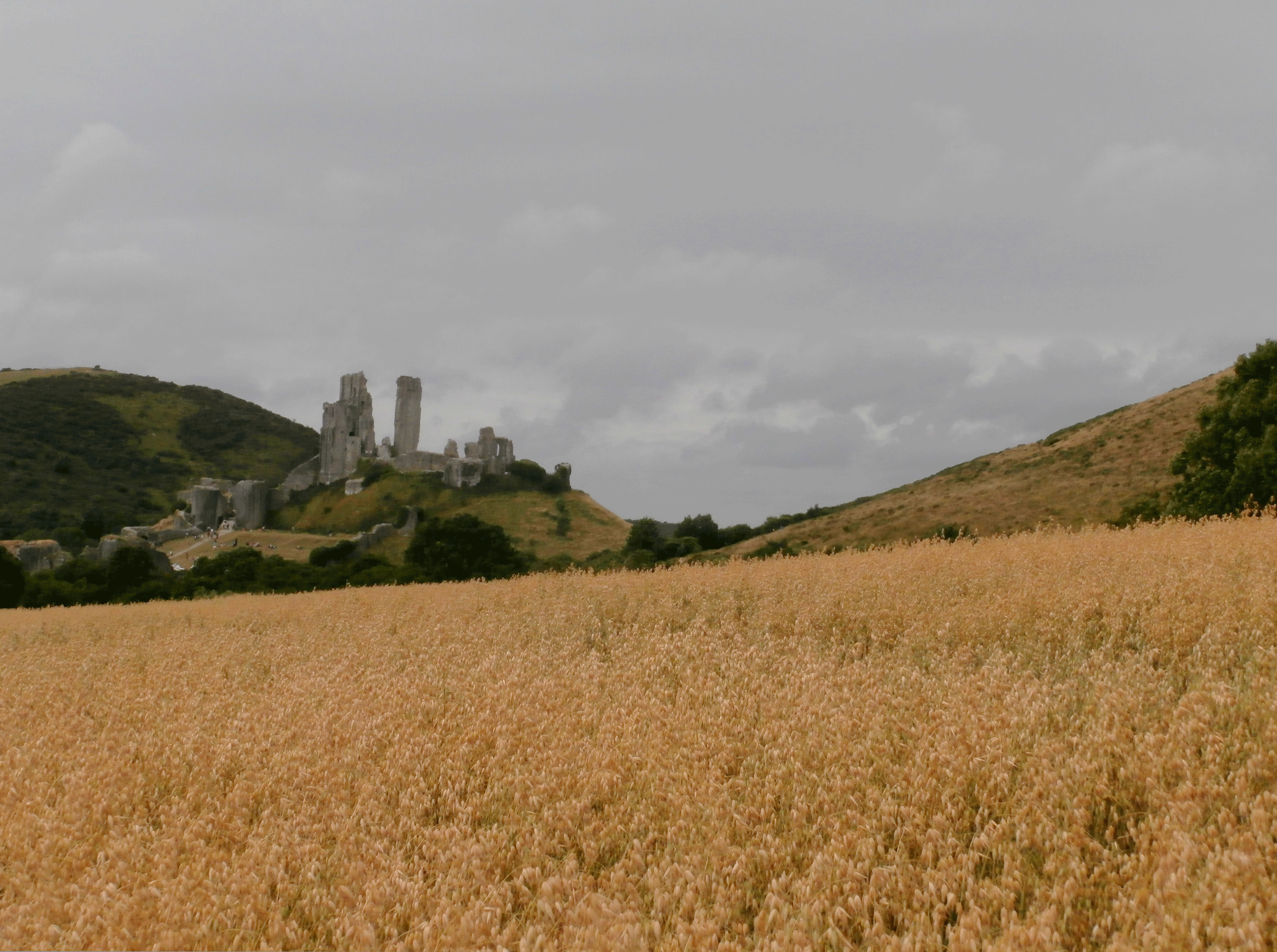 .. and here Corfe Castle can be seen from just outside the village, emerging from the fields of barley.
