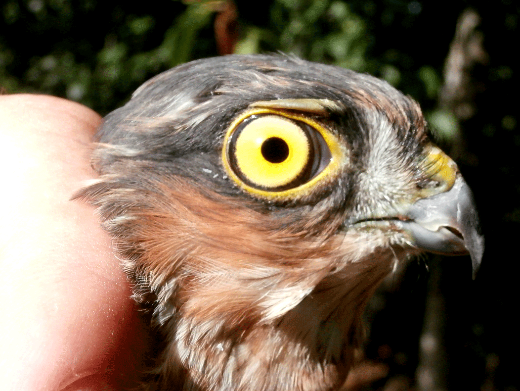 At Fleets Lane this male Sparrowhawk was an interesting capture. The yellow eye (orange in an adult), and active moult of the flight feathers whilst retaining some brown fringed juvenile feathers allowed us to confidently age it as a second year bird.