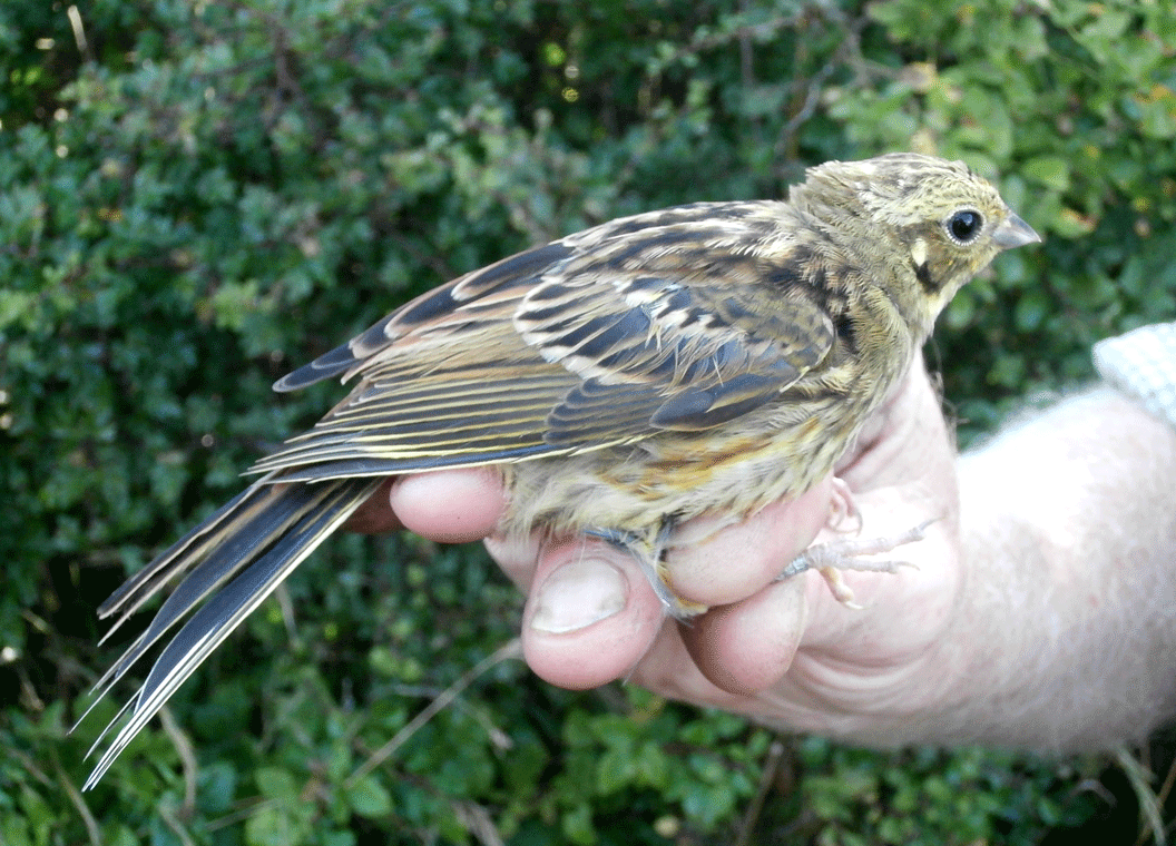 The ringing of (mainly) young birds in the autumn is important as a measure of the annual productivity and also sheds light on the movements and dispersal of birds in their first season. Ringing has shown that many adult birds migrate earlier than their offspring and move directly from their breeding to their wintering sites, so are less likely to be trapped at our coastal migration site at Durlston. On the other hand we have ringed many adult and young birds at Fleets Lane in Poole, many of the former are in full wing moult prior to migration, something we don’t see often at Durlston.