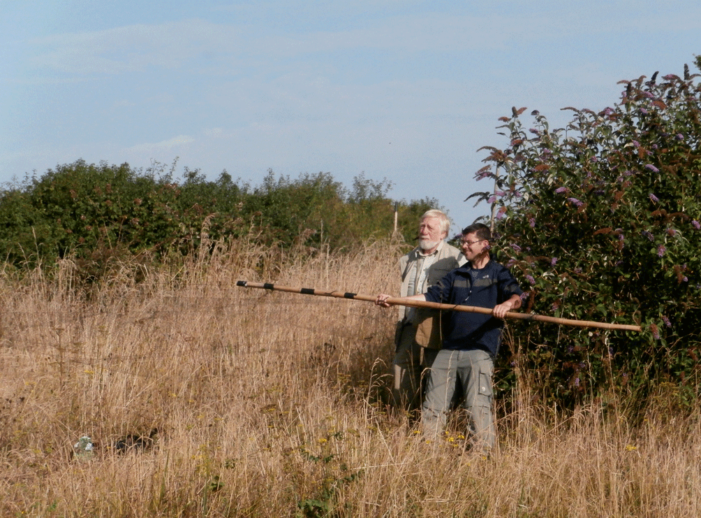Back in the ‘garden’ Mick and Mike try ‘flicking’ for Swallows, that is swinging a net into the path of Swallows that are drinking at the pond. Although an accepted technique they had zero success!