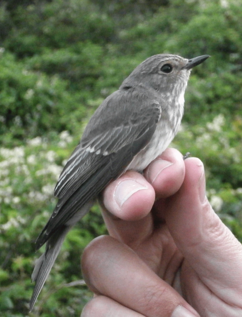 On the 27th we also ringed our only Pied Flycatcher of the year. The shape of the white fringe on the tertials allows this bird to aged as a first year.