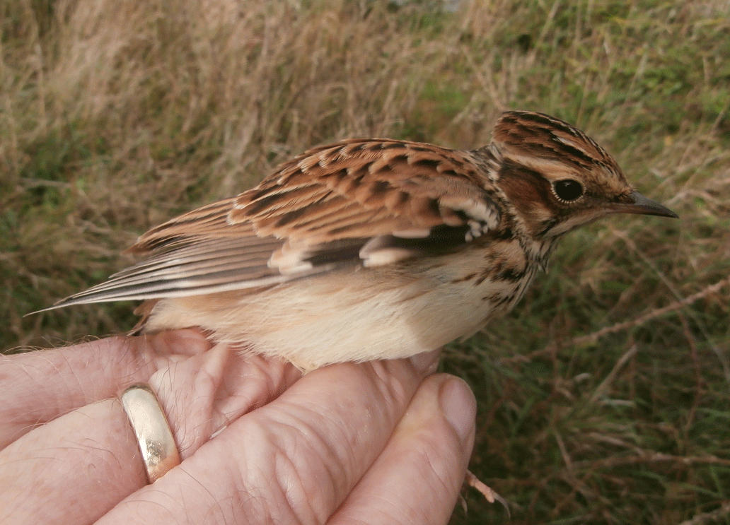 Although ringing is all about researching common species, catching a rare bird is always a delight. The Melodious and Yellow-browed Warblers that I caught this year were at least ‘on the radar’, but although far commoner in the UK, no-one had predicted we would trap this Wood Lark.