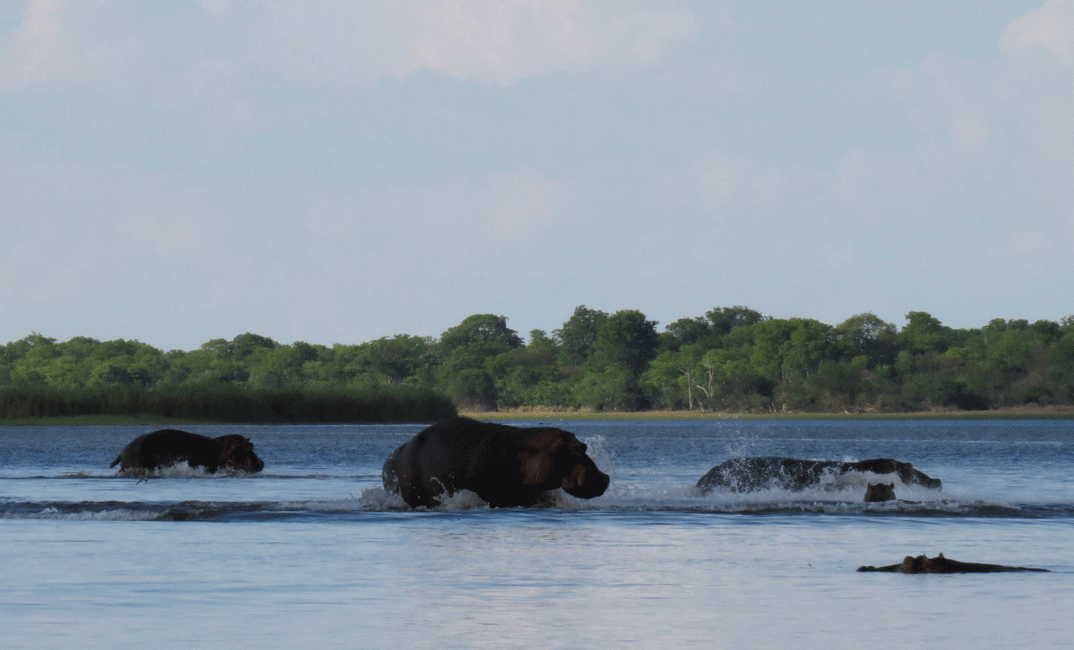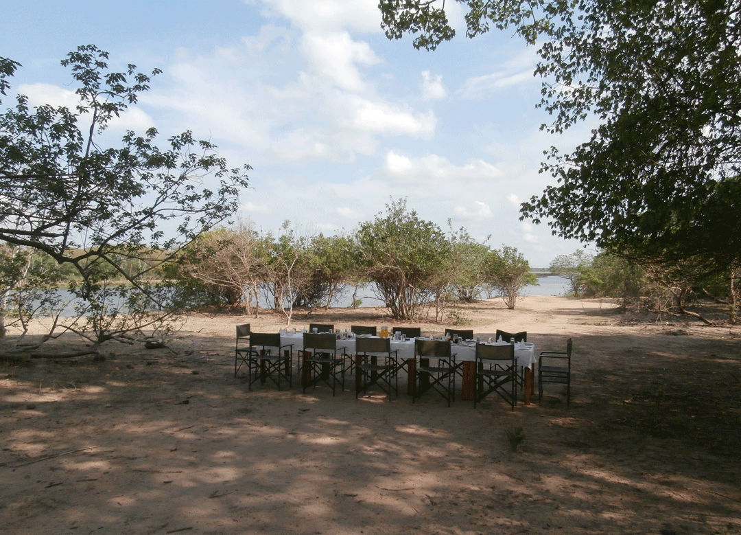 The view from the dining area. The grassy lawns on the banks of the river were favoured by Hippos in the early morning and Elephants and Waterbuck could also be seen whilst eating lunch.