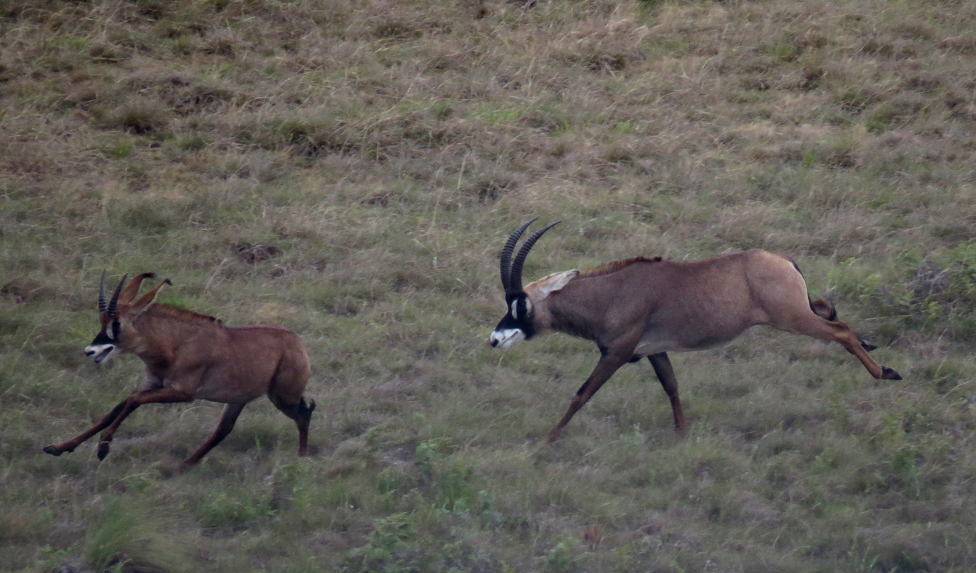 Abundant game on the plateau included many Roan antelope. Here a dominant male is seeing off a young male. The chase lasted for five minutes or so and the older male would not leave the youngster in peace.