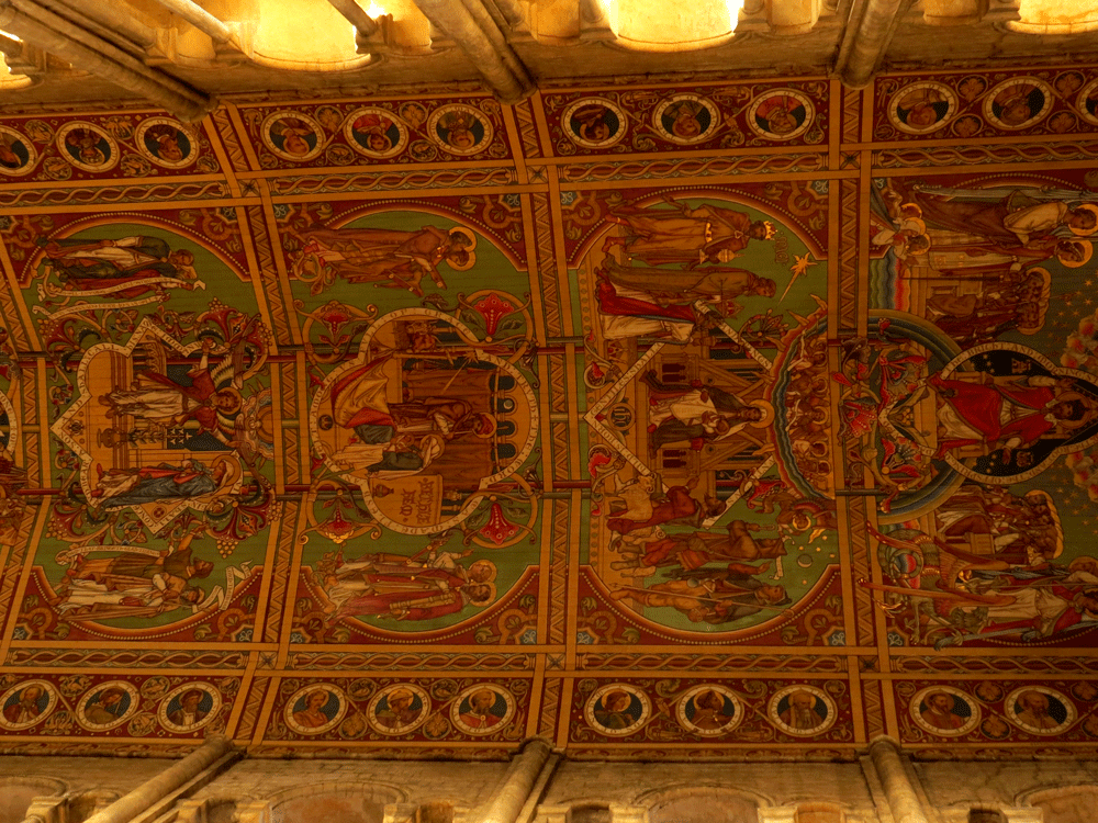 One it’s most important features is this ancient wooden ceiling with ornately carved angels.
