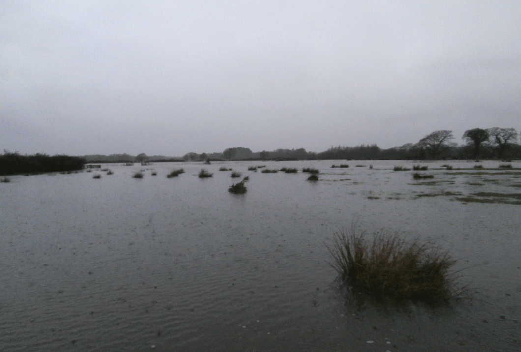 Leaden skies, wind and rain dominated all week. These fields at Lytchett Bay are usually grazed by cattle, Water Buffalo would be more suitable now.