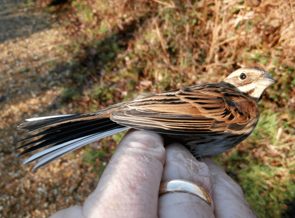 We managed three ringing visits to Holton Lee. As usual we ringed or retrapped lots of Blue, Great and Coal Tits, Robins and Dunnocks plus a small number of Great Spotted Woodpeckers and Nuthatches. The large number of retraps allows us to hone our aging skills by examining birds of known age and comparing the plumage against the published criteria. On the 14th we trapped the first Reed Bunting for the site on the but had already ringed as a juvenile (3J) female at Lytchett Bay on 23rd August 2013. I’m happy to report that we considered it to be a first-winter female (age code 5) which of course, it should have been.