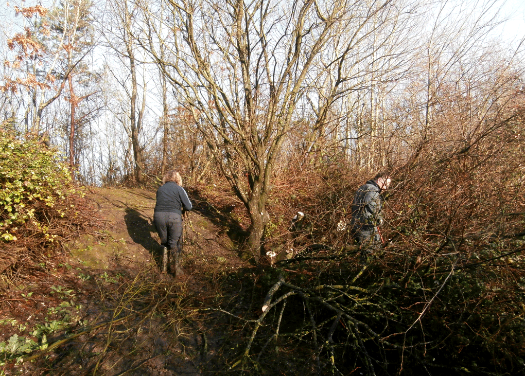 We have long considered that our ringing site at Fleets Lane needed some maintenance, mainly in reducing the height of the vegetation to promote new growth. Seven of us met up on the 26th for a very tiring four hours of cutting, trimming, hacking and trimming.
