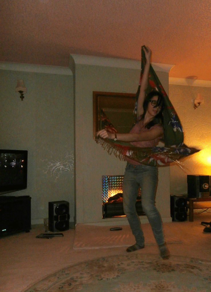 Viv with her daughters, Jenni (left) and Miriam (right) spent the evening watching a dancing video