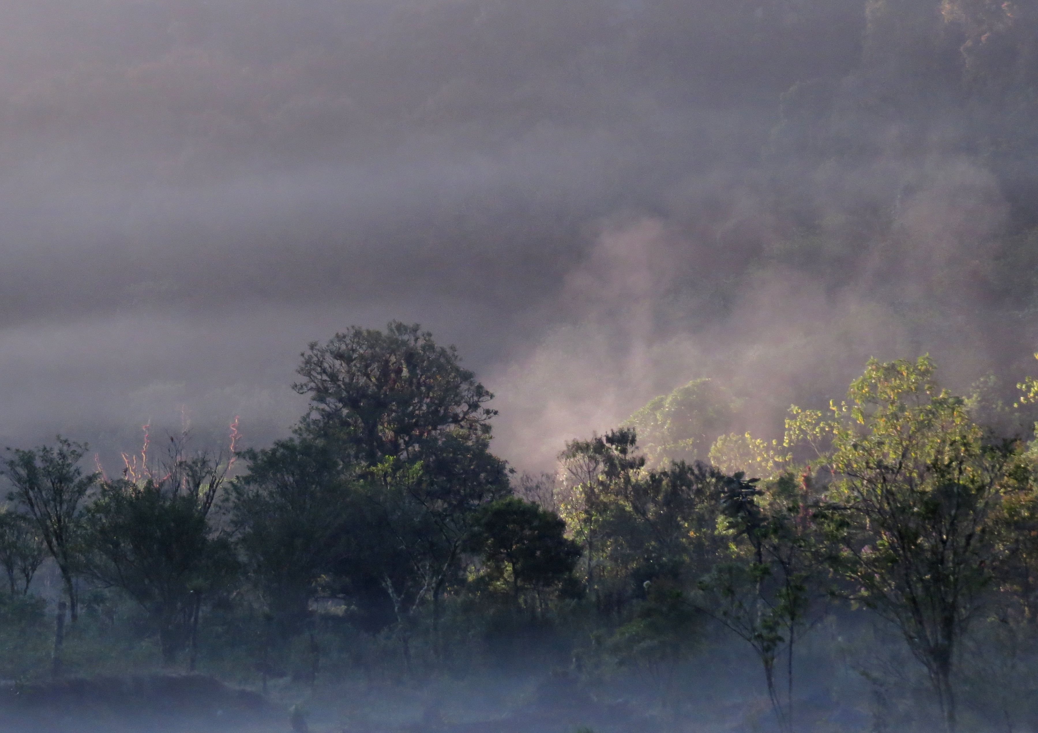 Each morning the rising sun illuminated overnight mist in the clearing.
