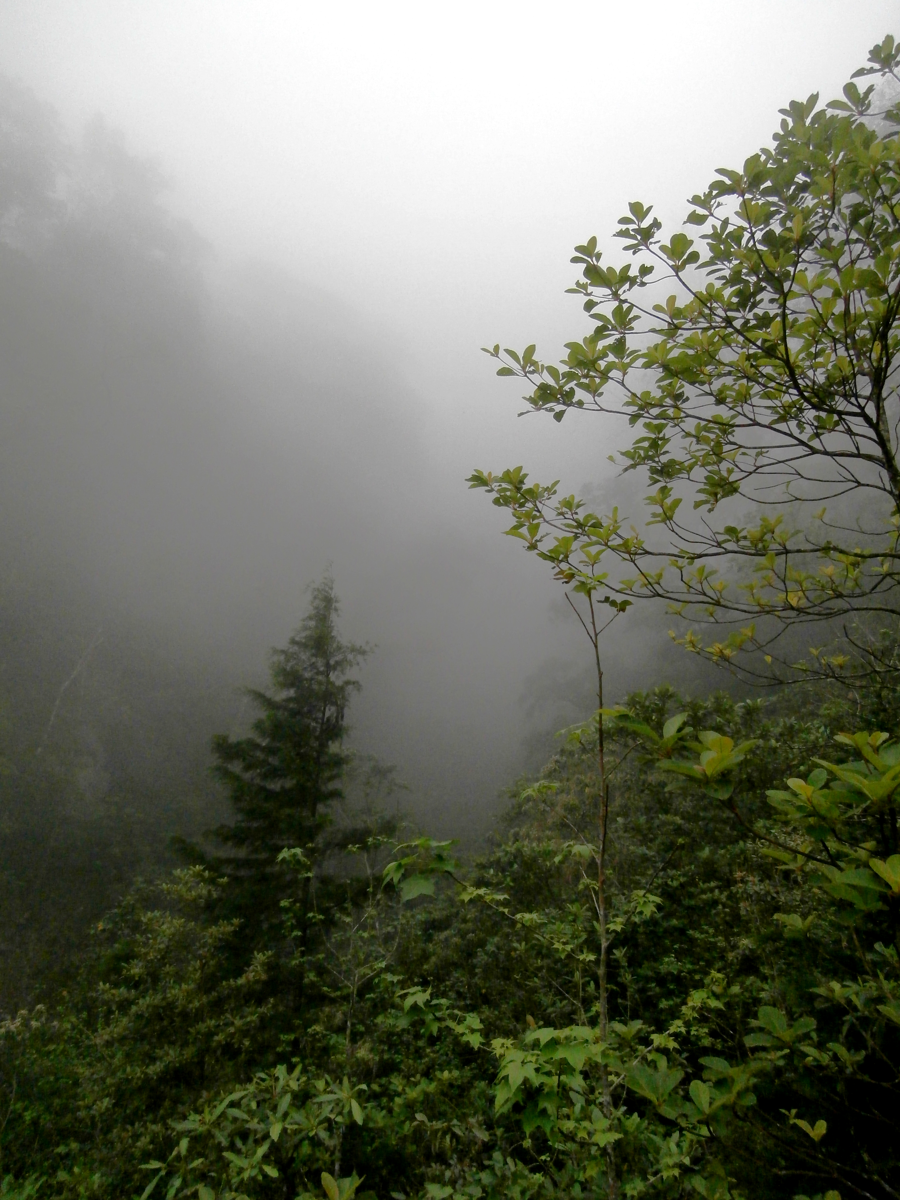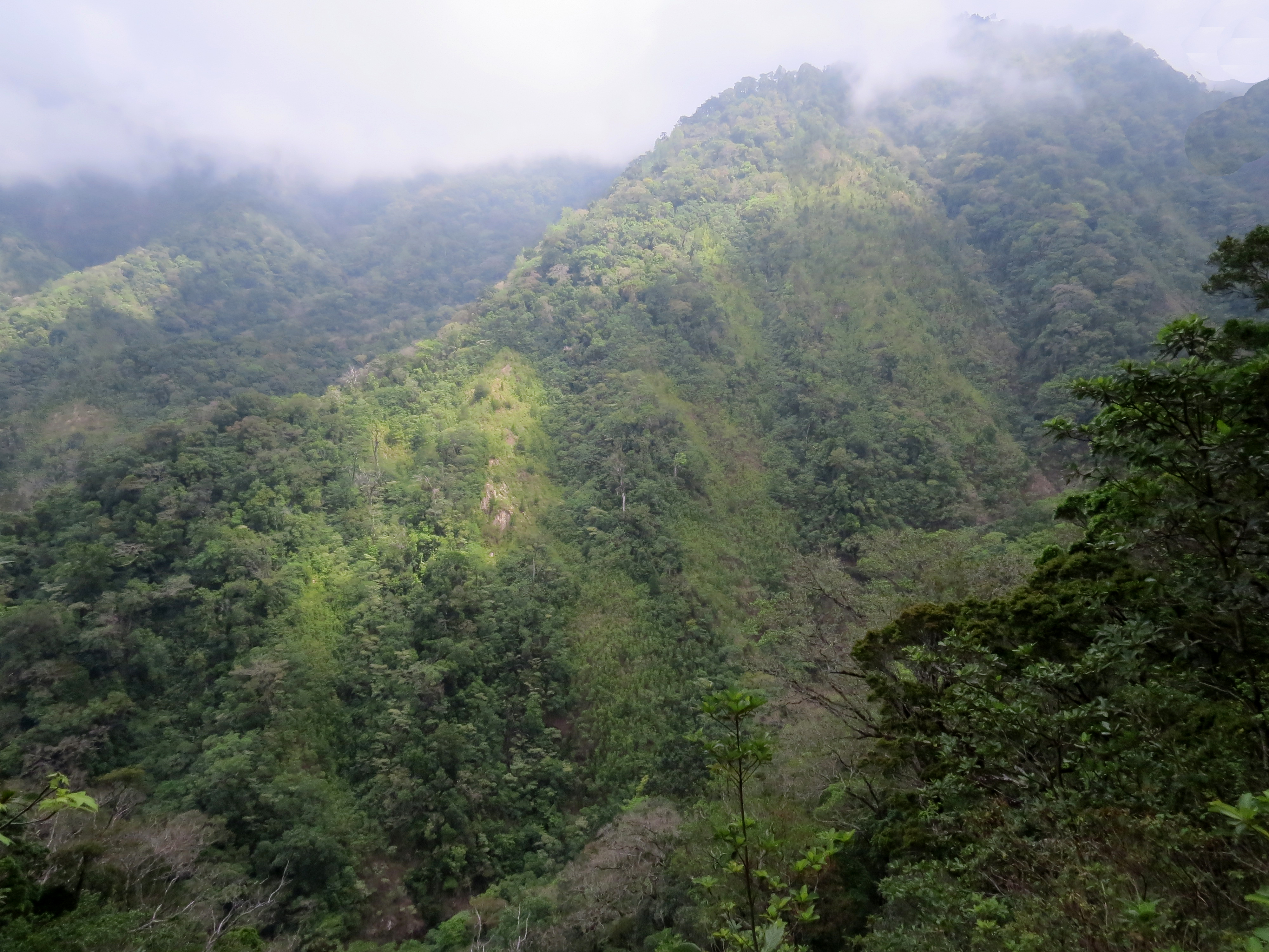 Eventually we dropped below the cloud. The slopes are not deforested by locals but by the regular landslides that occur on these precipitous ridges.