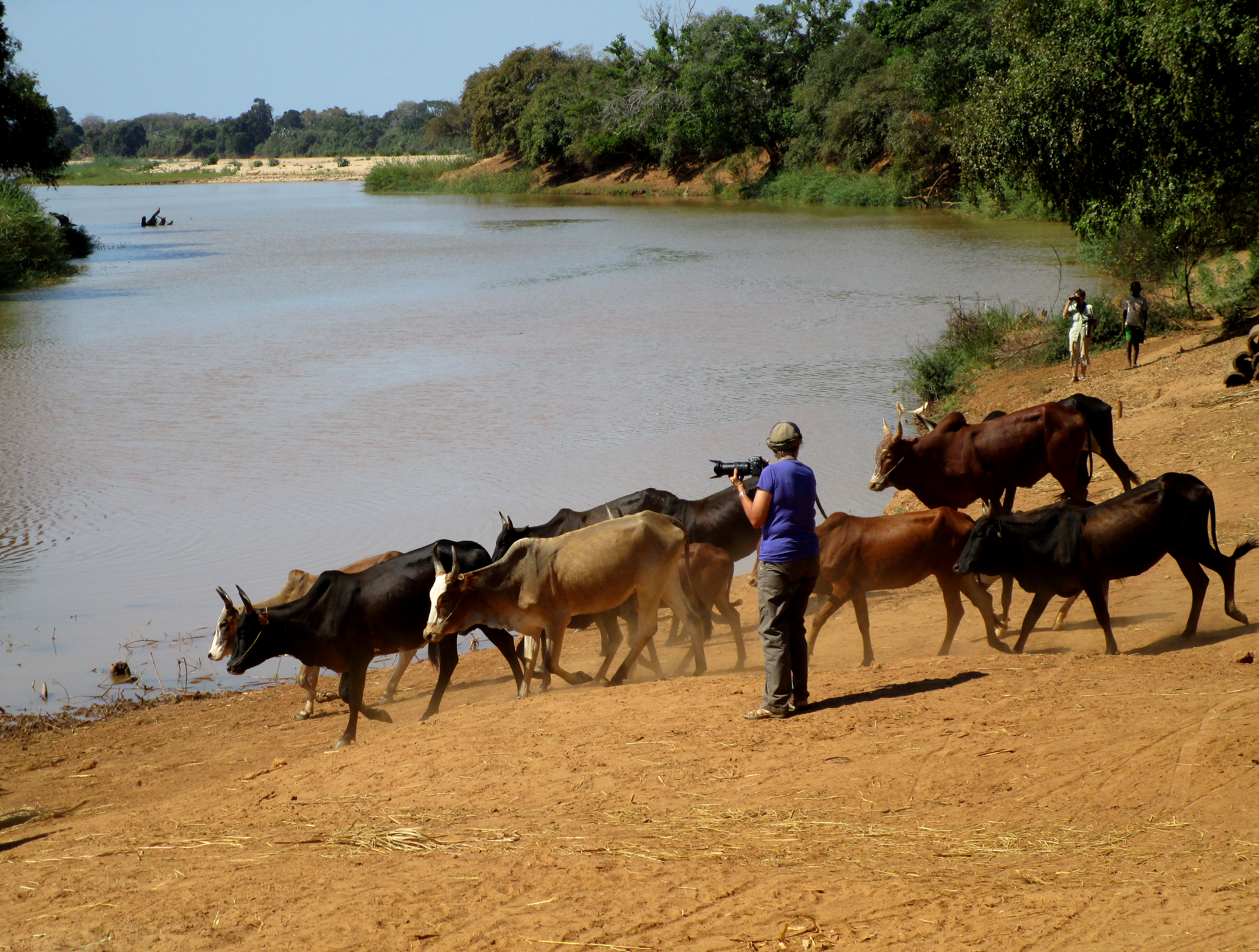 Our progress was blocked by a wide river, the cattle could swim across …
